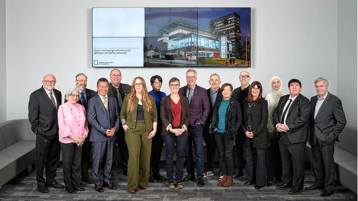 The OAA is governed by a Council of 15 Architects elected by the membership, and up to five members of the public appointed by the Province of Ontario. Council sets policy direction for the Association. Its work is assisted by more than 300 volunteers working on numerous committees, task groups and 14 Local Architectural Societies throughout Ontario, as well as by an Association staff of 32. Councillors can be reached by emailing council@oaa.on.ca. 2025 OAA Council: L to R: Donald Ardiel, Elaine Mintz, J. William Birdsell, Thomas Yeung, Jim Butticci, Kristiana Schuhmann, Jenny Lafrance, Lara McKendrick, Ted Wilson, Settimo Vilardi, Michelle Longlade, Ted Watson, Susan Speigel, Loloa Alkasawat, Deo Paquette, and Marek Zawadzki. Absent: Kimberly Fawcett-Smith, Natasha Krickhan & Anna Richter.