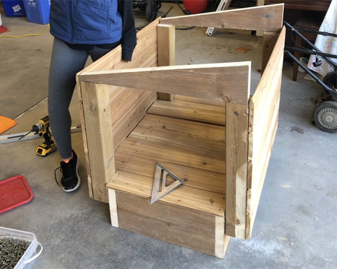 The girls have always enjoyed working with tools (to the extent we would allow it) and we had some spare wood in the garage. A brainstorm session broke out to see what we could make from it. Recently, our family had been talking about getting a pet, and we had settled on a bunny. We immediately decided to design and build a house for our bunny, even though we didn’t actually have it yet.