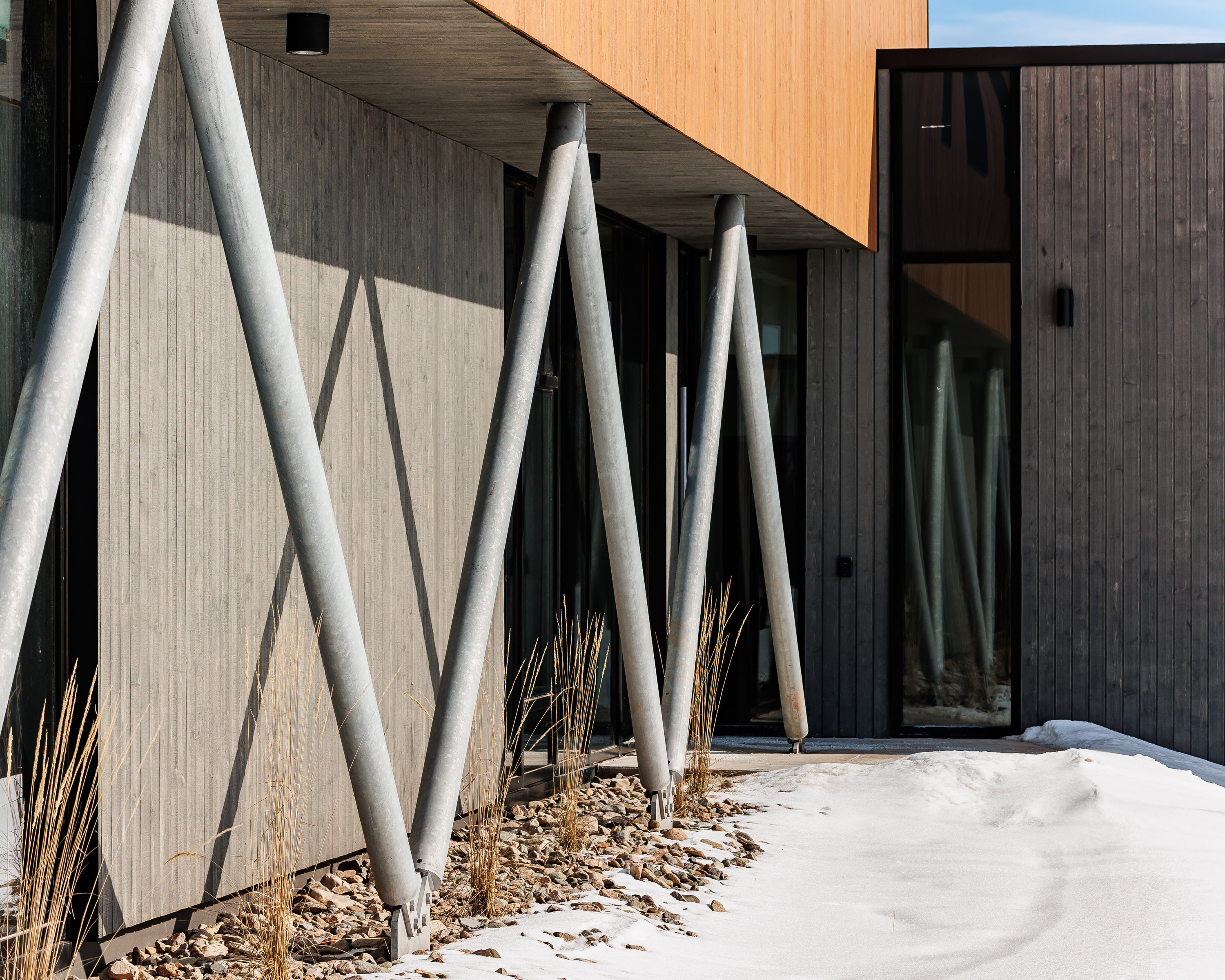 A ’think global/act local’ place-making and resiliency strategy leverages local skills and materials to achieve exceptional economy and performance. Its all-electric design includes ground source heating/cooling, which, along with its solar array, achieves sustainability targets of the Canada Green Building Council’s (CaGBC) Zero Carbon Building standard.