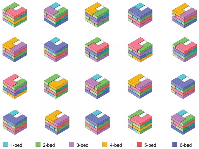 Isometric diagrams showing various configurations | Lin Architects Urbanists
