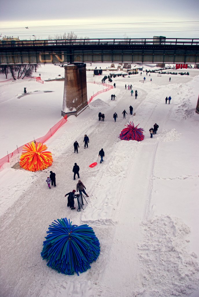 Every year, Winnipeg hosts Warming Huts: An Art + Architecture Competition, which provides shelter for people enjoying themselves on the city’s frozen river in the dead of winter. The installations tend to vary from practical to completely unconventional, with their main purpose being to animate the Assiniboine River and provide delightful little nooks for skaters.