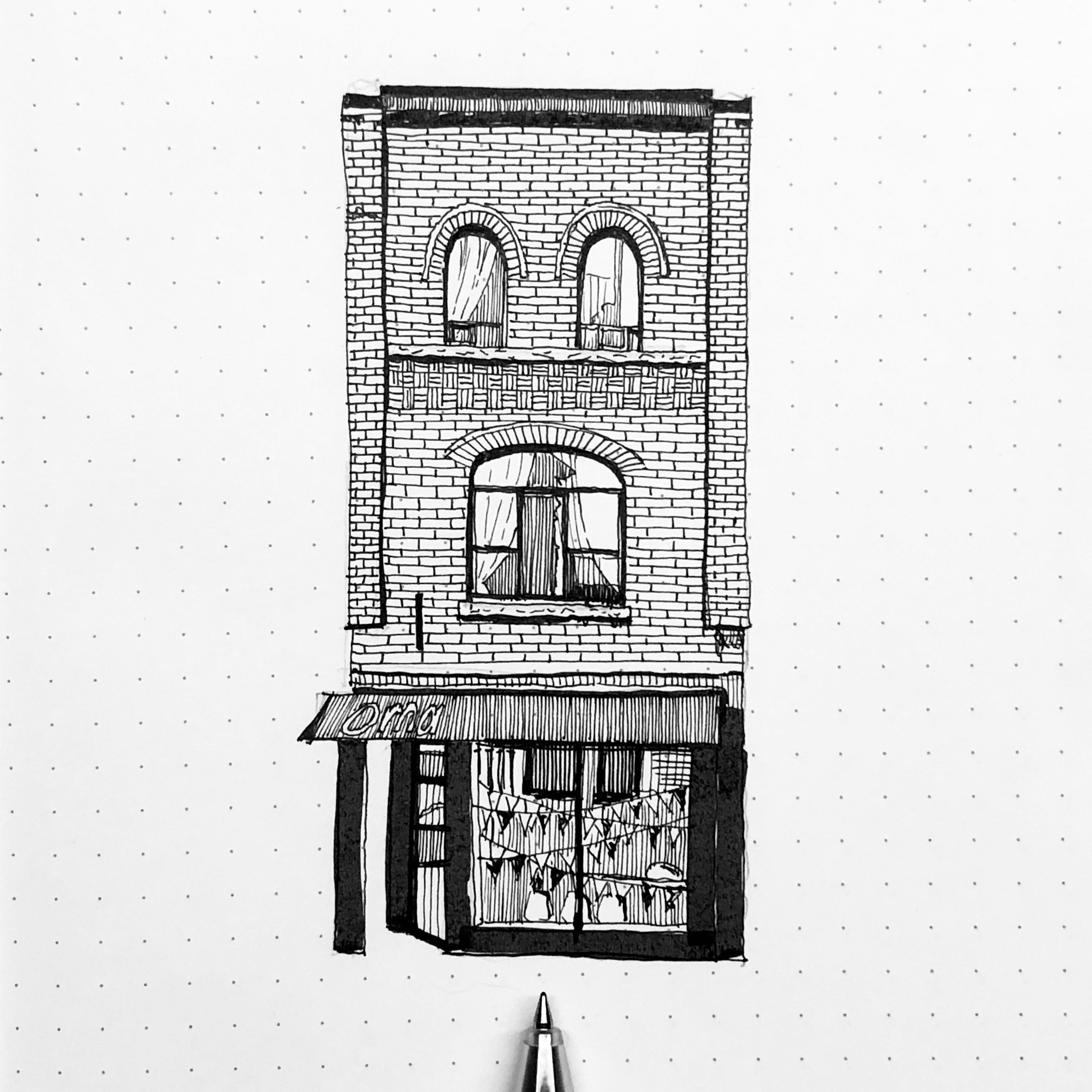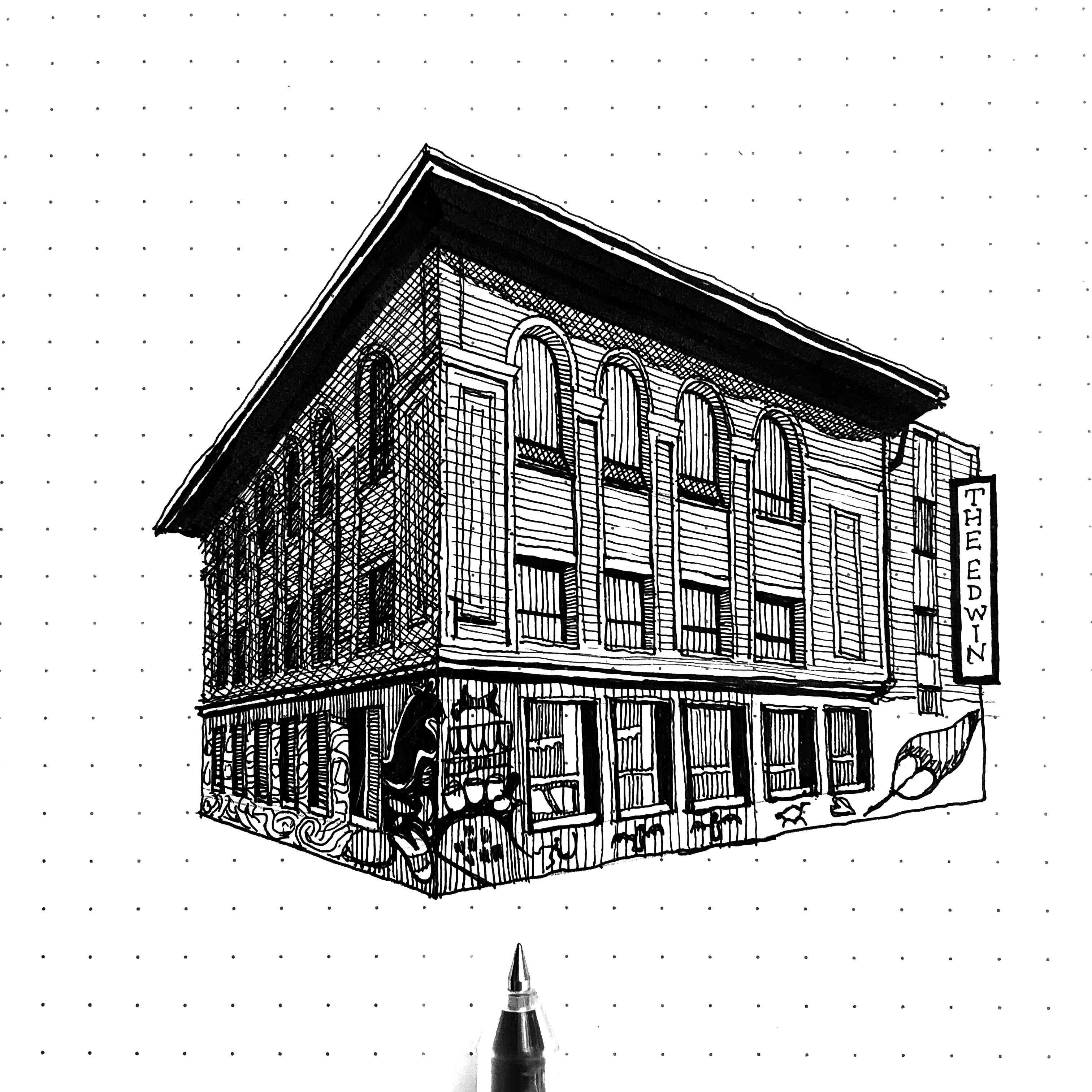 As cliché as it might be, sketching helps me “see” what I’m looking at. It allows me to catch details that I may have missed from just looking at a building and I get a greater sense of appreciation from that. During my first few sketches of The Queen Street Project, I have learned a lot about the history of the buildings I have been drawing and the Riverside neighbourhoods in general thanks to information given to me by the Riverside BIA.