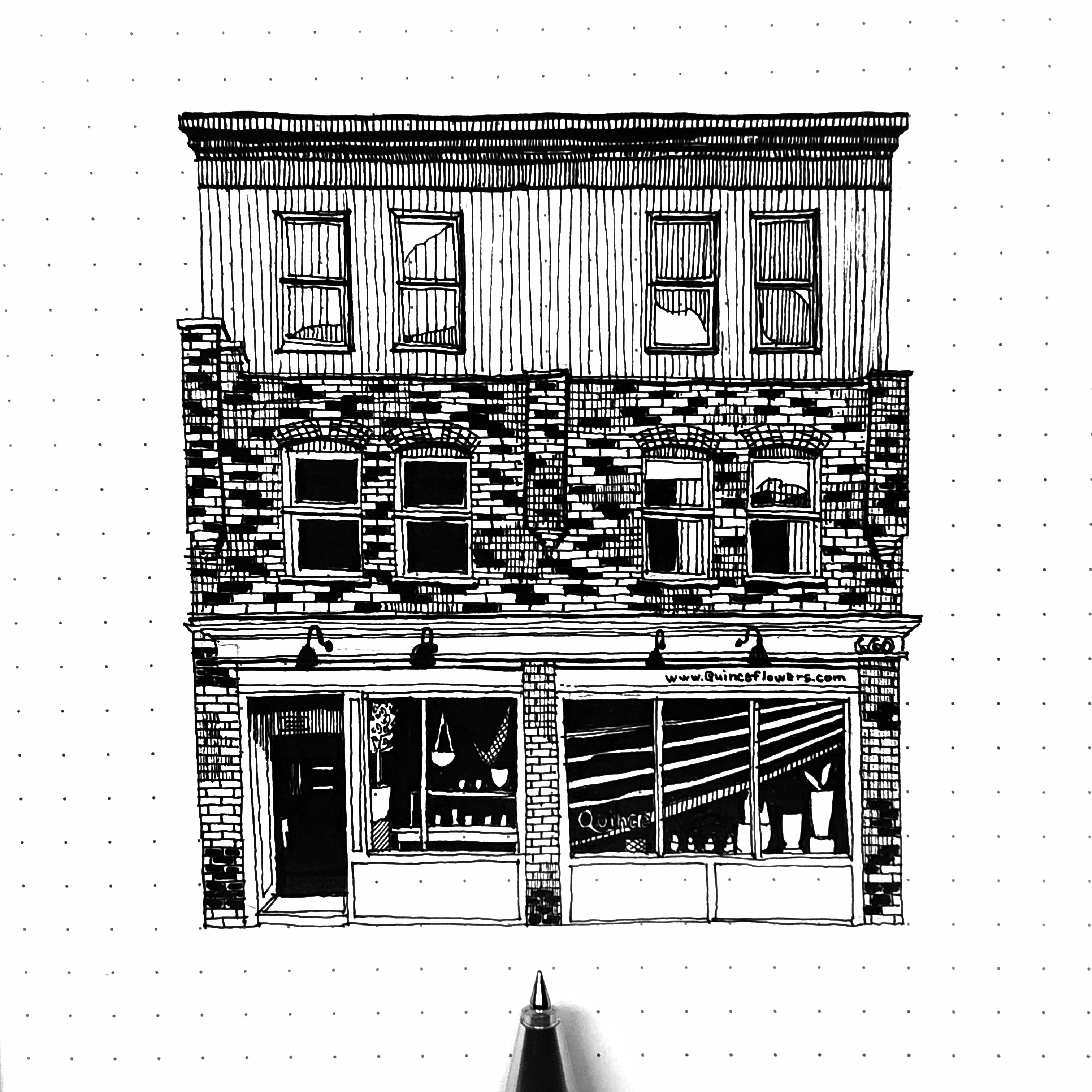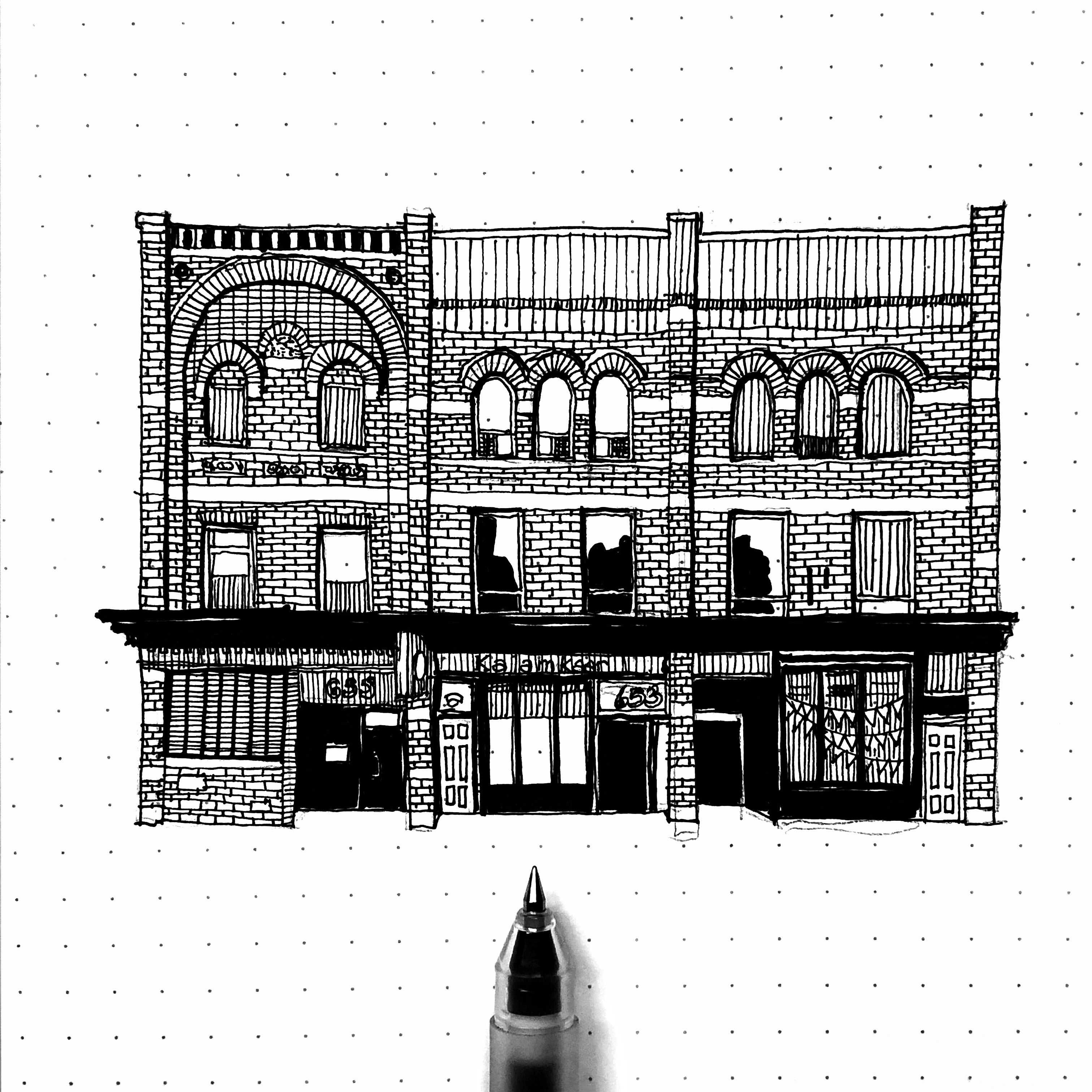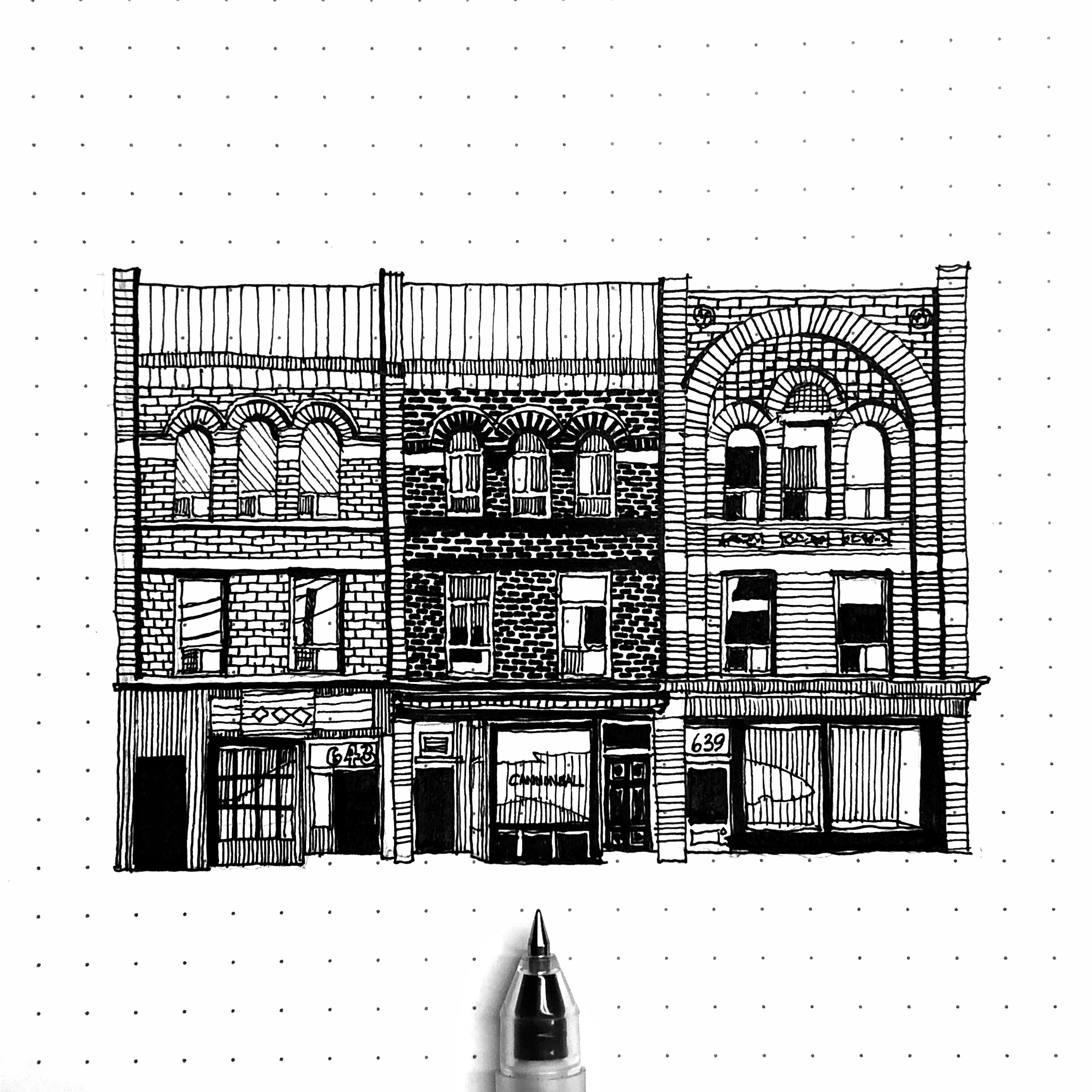 These drawings are the first few from a series I am working on called "The Queen Street Project” where I have started from the Broadview Hotel on Queen East and proceed west. I started this series as a way to get to know my own city and to see how the Queen Street building typologies change from one side of the city to the other.