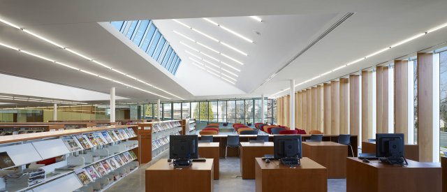 Interior view of elevated reading atrium. Photo Credit: Tom Arban