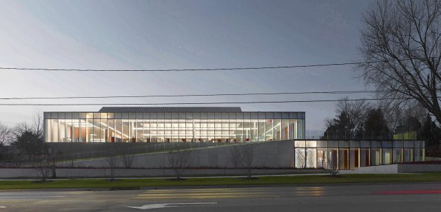 The Waterdown Library and Civic Centre provides an ingenious architectural solution to the naturally sloping site, taking advantage of the existing topography to establish an elegant and universally accessible interior organization for this newly established community hub.
