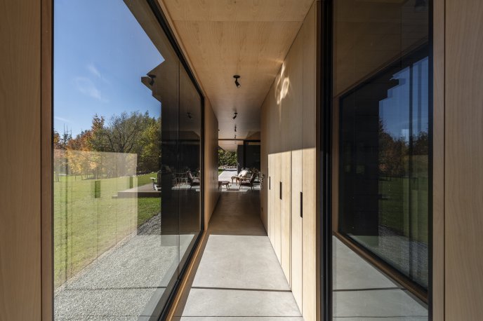 This project prioritizes the integrity and retention of the existing 19th-century log cabin, with the gabled roof of the complementary new addition reflecting the region’s historical context of agrarian buildings. Minimal intervention guided the design approach, and the low-slung massing of the newly built structure defers to the old cabin through its lower height, articulated as an elongated bar reaching out into the landscape. The home embodies openness and transparency, reflective of the welcoming nature of the clients, and represents a positive contribution to the region and community while establishing a standard for modest architectural expression in residential building.