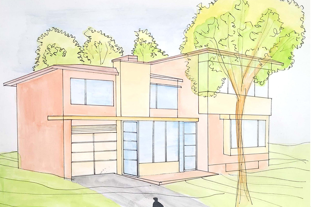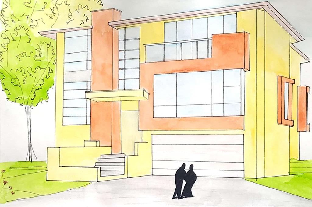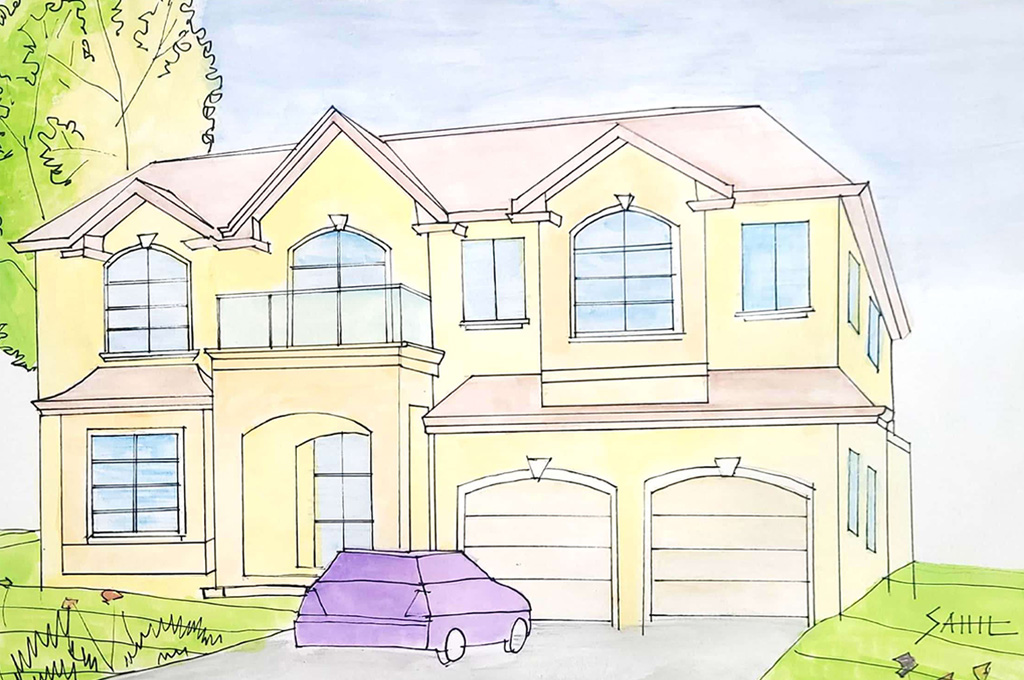 "These sketches are a compilation of work related to custom home projects which I was part of. I completed them recently on 11"X14" sketch/drawing papers using Pigma Micron Pens & Water Markers. My idea was to create a wall frame collage for the foyer wall in my residential unit. I am always excited about creating handmade illustrations using different mediums. This wall collage creates a sense of artistic/creative environment and motivates me to continue doing it and improve further."