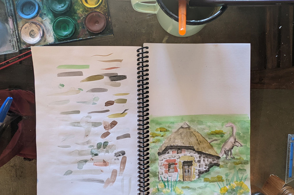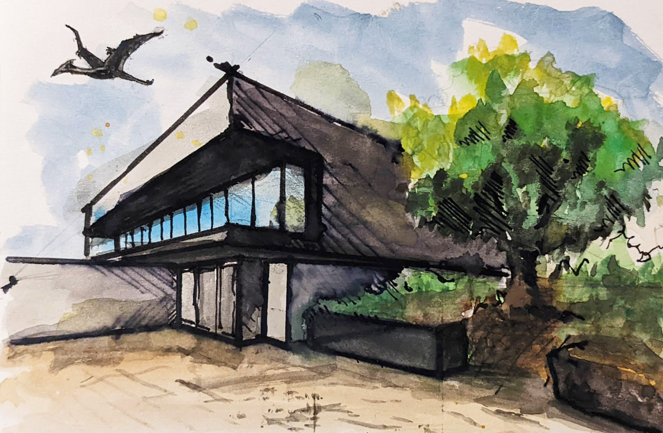 I took up watercolour this past year and to practice I thought to draw a few buildings. I prefer drawings/photos of buildings being inhabited but I didn’t want to faff around drawing tiny people in watercolour so I put in dinosaurs instead. It is supposed to be light, fun, and whimsical, but depending on one’s mood it can have a tinge of tragedy as well, evoking shades of extinction which we as a species seem to be exploring with ever increasing success. I think architecture is a profession that suffers greatly when it exists in a vacuum of ideas. I remember a film maker who once said “a movie based on a movie is a terrible thing”. That really struck me because the same can be true of architecture to a certain extent. For architects and designers, sketching can inspire and open up worlds and rabbit holes which are well beyond our profession, which will in the end breathe new life into it.