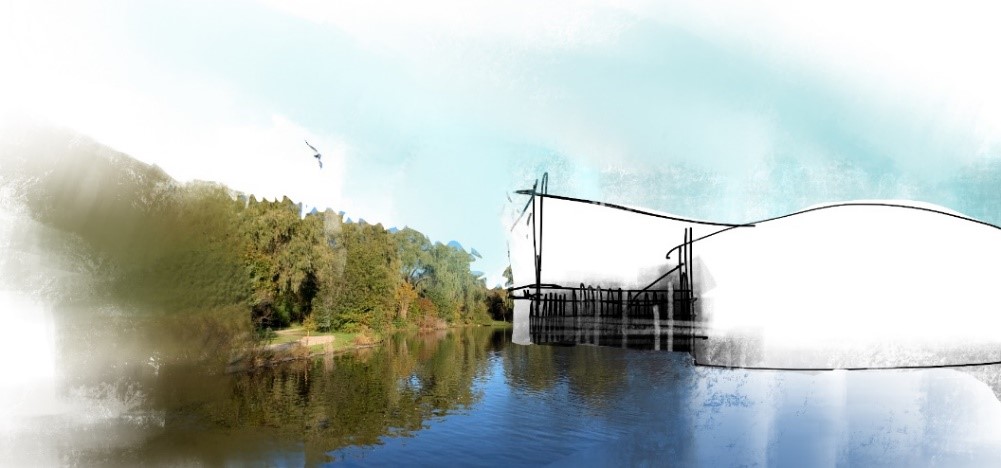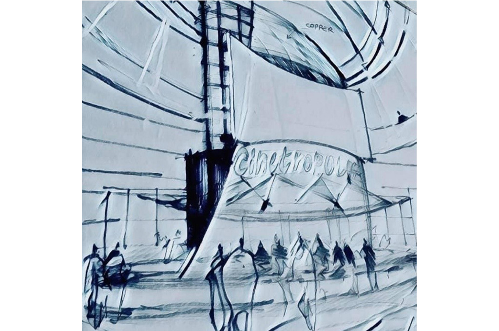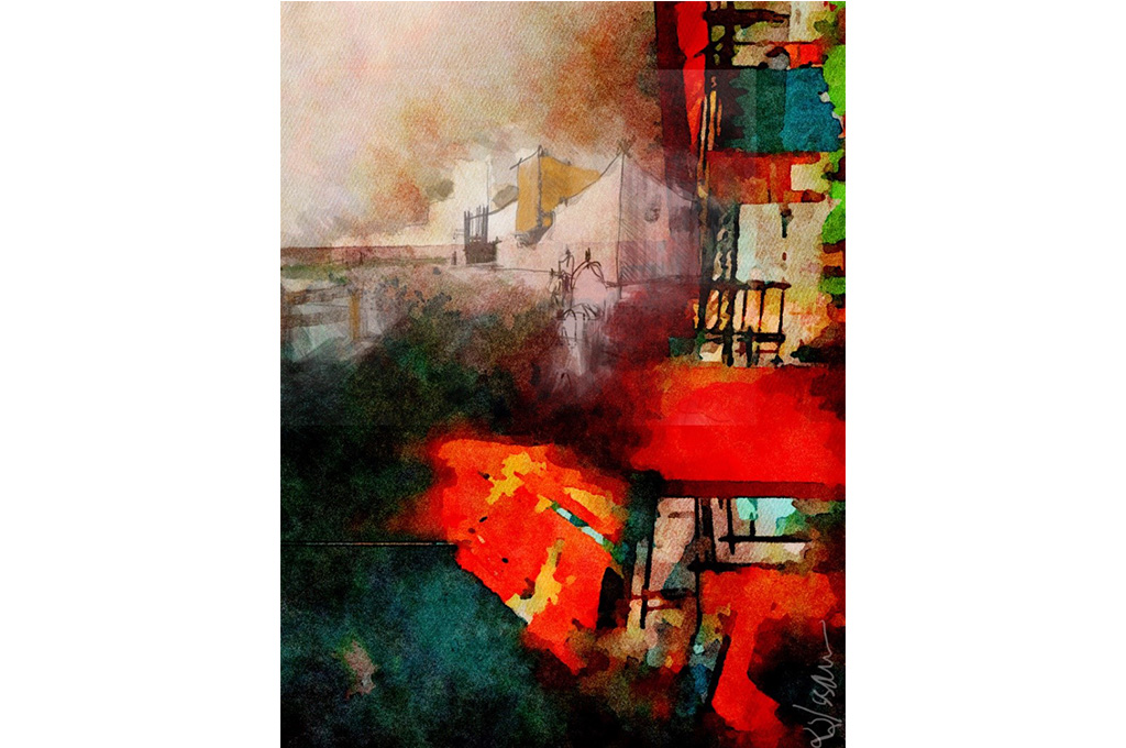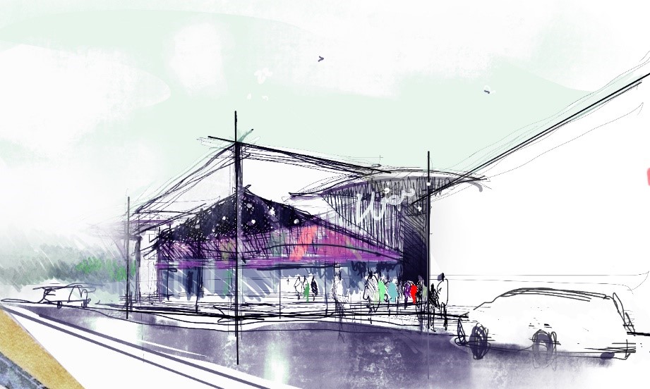 How I think sketching is an interative and innovative tool rather than a mechanical reflection of a ready-made vision. Figure 1 (above) - Face-lift to an Existing Mall. Ink on tracing paper. I chose this sketch because I felt that it had made the client excited. The curvilinear canopy was eventually done as a straight-line box for economic reason but the vocabulary remained the same. For me sketching has always been an iterative tool not a “presentation” method. I think through sketching! Figure 2 - Schematic Proposal for a Community Centre. Markers/colored pencils on velum. I chose this sketch because it felt like a deviation from my ink on paper technique. Materiality is not clear but only suggestive (the vaguer the more intriguing…). I tried a lower vantage point for this sketch to express “progression” toward the building. Figure 3 - Schematic Proposal to a Retail Interior Alteration. Ink on printing paper, markers, pastel pencils, and collage. I chose this sketch because it deals with interiors. Interiors are hard to “conceptualize”. I feel this sketch helps realize the potential of the space. I love designing interior spaces as I can deal directly with colors and textures. Figure 4 - Imaginary Proposal - A Water Museum on a Lake – Ink on existing image from my iPhone. I used a white out to erase part of the lake and burred it using Photoshop. I’ve always wanted to design a floating museum. It looks so heavy and grounded, yet so light and almost moving. Figure 5 - Proposed Addition to Existing Arena. Markers (Prismacolor), pencil, ink, on paper. This is a different technique as part of my growing attempt to explore more forms of expression. One of the key elements of a good sketch is that it should be suggestive. The sketch needs to allow the imagination of the client thrive and flourish. The purple is not part of the building but the suspended ceiling of the fully glazed sports club at the corner. Figure 6 - Proposal of a New Strip Retail Addition. Ink/marker/colored pencils/white out pen, on technical SPA blueprint. This is a more advanced sketch that shows a more concrete solution. For me, I always think that showing a proposal through a corner view is much better appreciated by the client. Figure 7 – An Artwork. A scanned sketch blended with previous Photoshop painting. I use the flimsy nature of the sketch with the heavy artistic expression of the oil. This sketch/painting was not drawn for client or to display but an attempt to leave the material world for a bit and travel beyond. It helps me recollect my focus and energize my creativity. In a way it’s also an exercise to sharpen my tools through experimentation. Figure 8 - Older Sketch of the Colosus Movie Theatre Interiors - Vaughn ON. Ink on paper with crimson blue markers. I used my fingers to blend the edges and create a melting feel (not sure why). This sketch was part of my 100 iterations to conceal the gigantic steel-trussed vertical supports of the colossus central space (the tickets booth area).