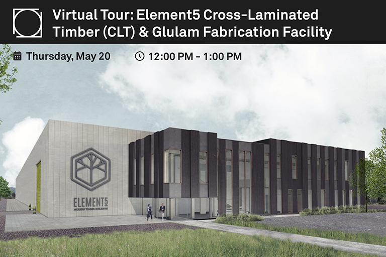 Chris Latour, VP of Manufacturing Engineering, on a virtual tour of Element5’s state-of-the-art plant, the only CLT fabrication facility in the province. Walk through the complete production process from lumber conditioning, through finger jointing, layups, gluing, pressing, sanding, and CNC machining of finished panels and gain new insight into the mass timber revolution taking place today.