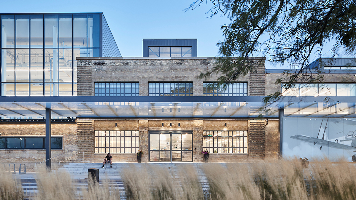 This adaptive reuse houses the Aviation and Engineering Technology & Applied Science program at Centennial College’s Downsview campus on a site that was once Canada’s epicentre of aviation design and manufacturing. The College’s educational programs are housed inside the heritage structure and new extensions; the complex comprises two hangars, classrooms, admin offices, a library, and learning and fabrication spaces that include avionics, electronics, engines, and composite labs, and group study and collaborative zones. The new facility establishes a museum of artifacts with a collection drawn from the site’s storied past and exhibits conveying the history of Canadian aviation.
