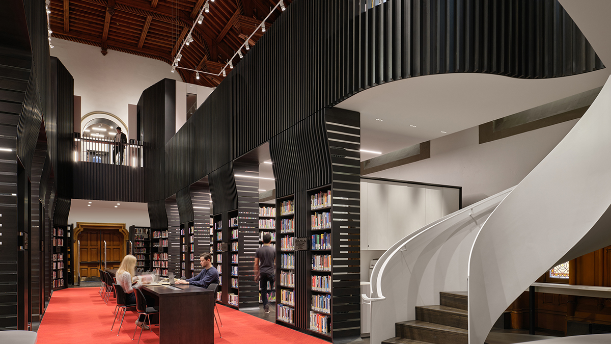 This project is the strategic and surgical revitalization of University College—an iconic landmark and one of the oldest buildings at the University of Toronto. The keystone of the project is the re-introduction of the University College Library into the two historic Great Halls located on the second level of the building, where the library had originally existed prior to the fire of 1890. This was a project with many design mandates, but most significantly, the design addresses the building’s history as inaccessible. The project dismantles the legacy of physical barriers by celebrating the architectural insertions that achieve it.