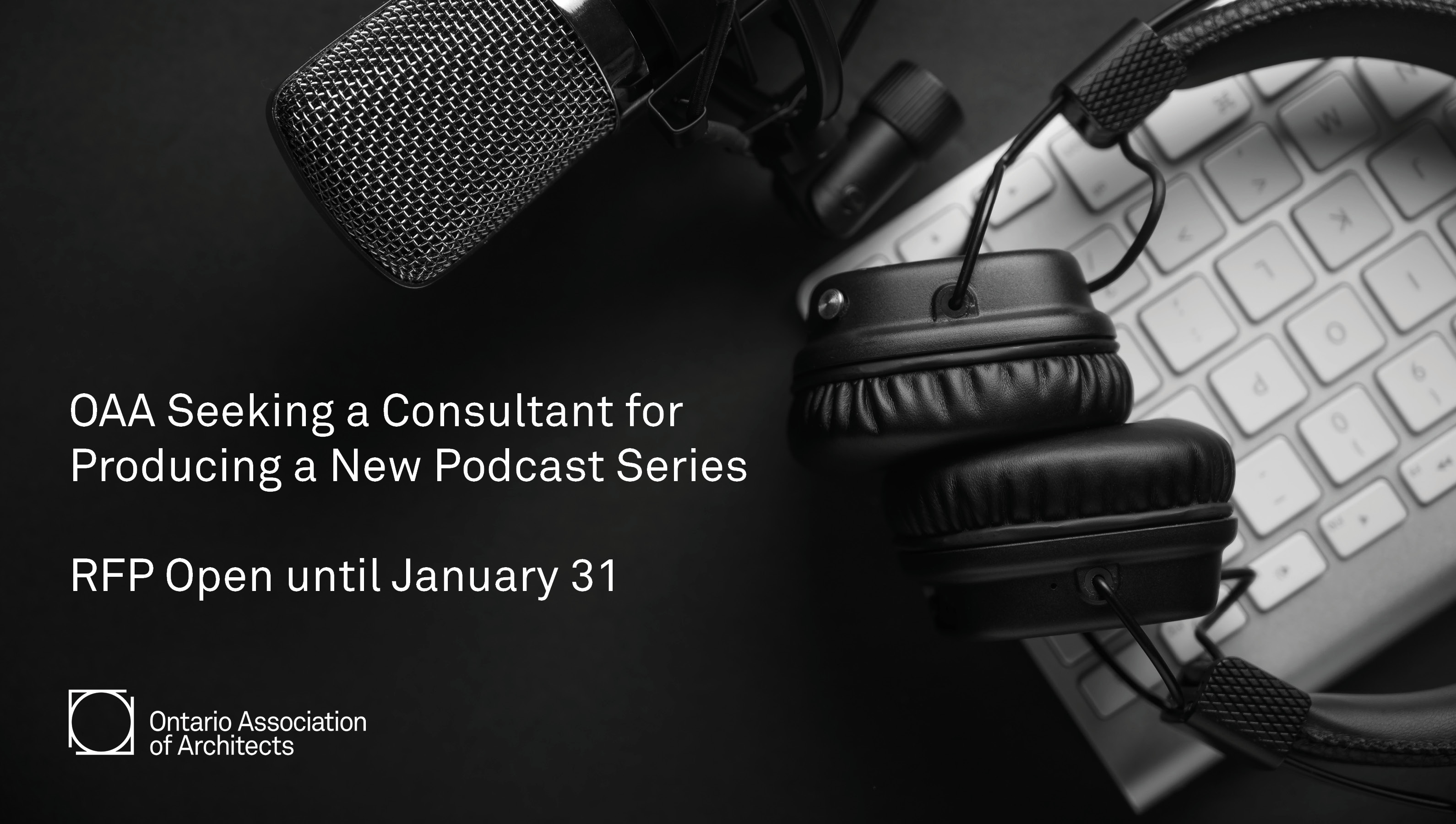 The OAA is planning to create and produce a podcast (both audio and video) as an additional mode of communication to reach an audience comprising not only its members and those on the path to licensure, but also architecture enthusiasts and the general public. The Association has issued a Request for Proposal (RFP) for a Podcast Production Consultant and is accepting applications from qualified consultants (individuals or companies) to work closely with OAA Communications Staff and/or the Communications Committee (led by the VP Communications) to facilitate the development and production of the inaugural OAA podcast series. To learn more, click here. The deadline to respond is Monday, January 31, 12:00 pm noon EST.